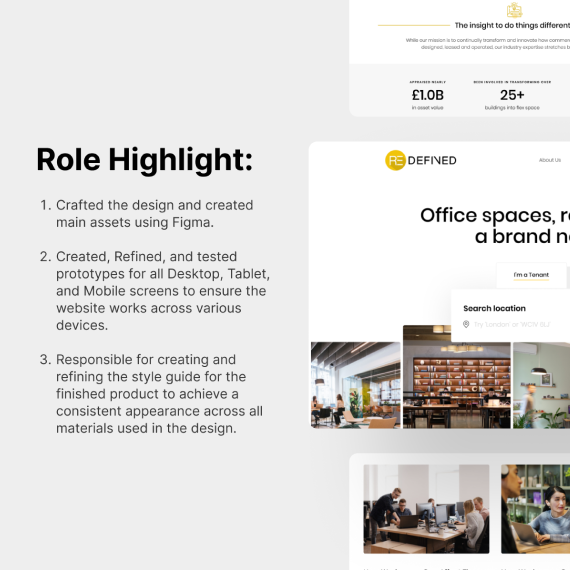 The need for the project was focused on designing a website to connect multiple target audiences; Tenants with Buyer, Businesses with Building Owner, Developer with Landlords. RE-defined was born out of a simple idea - to unlock the world of flexible offices for both landlords and tenants, providing an open, honest and transparent service.